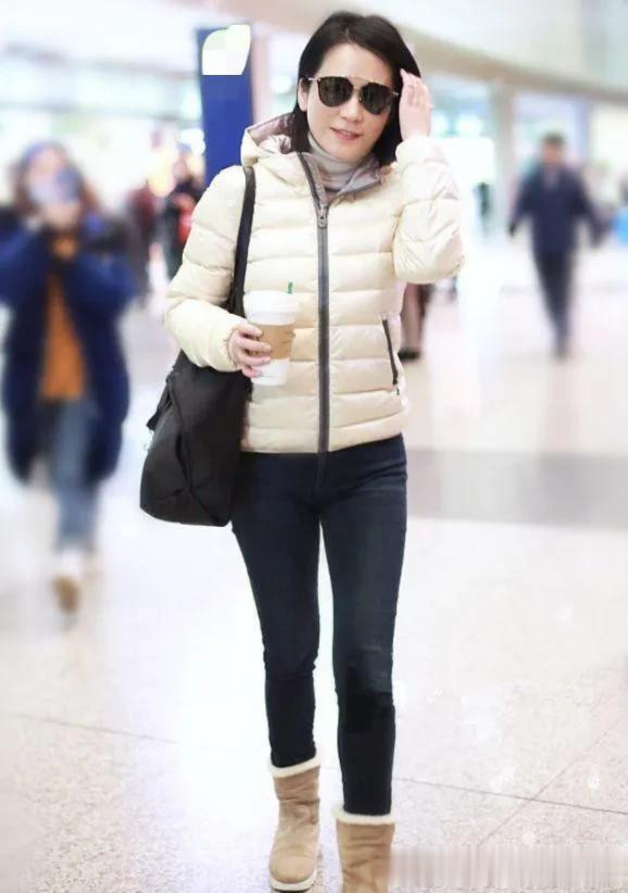 俞飞鸿真是70后穿搭标杆! 羽绒服+牛仔裤+雪地靴, 时髦减龄又洋气