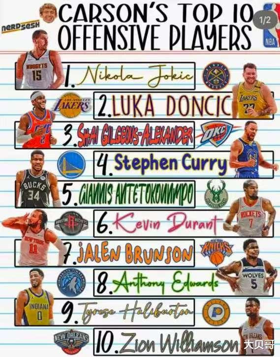 北京时间9月24日,在休赛期开始之后我们看过了很多美媒进行的排名,这里面多数的排名都是存在争议的,毕竟每个人心中对于最强球队都有自己衡量的标准,而近日两位美媒的记者罗根和卡森则是进行了一个评选,他们评出了自己心目中现役联盟前十进攻最强球员,其中前五竟然相同,一起来看看合理吗?