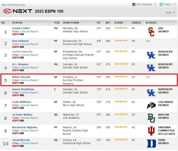 2023年高中毕业时ESPN综合评分93分,在全美百大高中生中排名第5,锋线位置排名第3,仅低于罗纳德-霍兰德和贾斯汀-爱德华兹,他收到全美所有重点大学的招募邀请,但他并没有进入NCAA,而是和霍兰德一起选了点燃队。