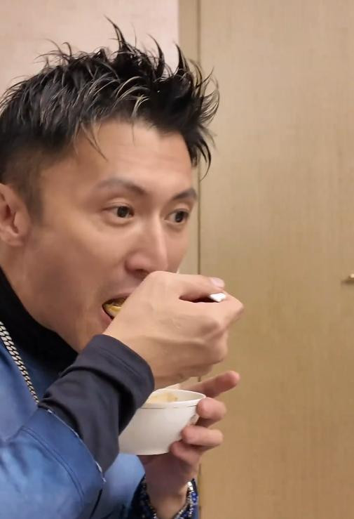 到了傍晚,霆锋哥又干起了老本行,开始品尝美味的食物。
