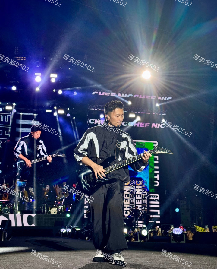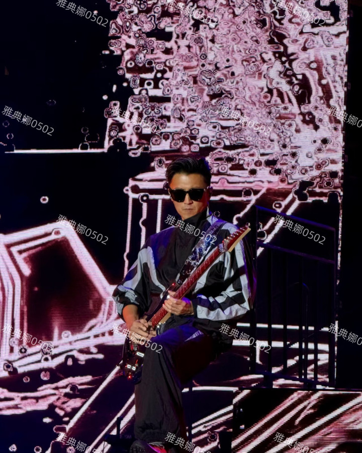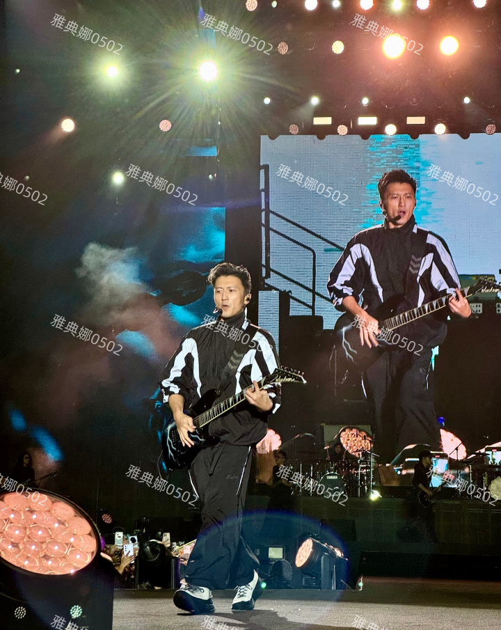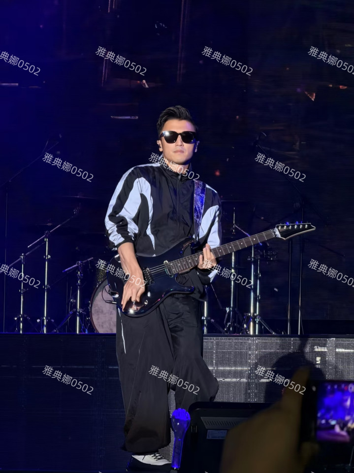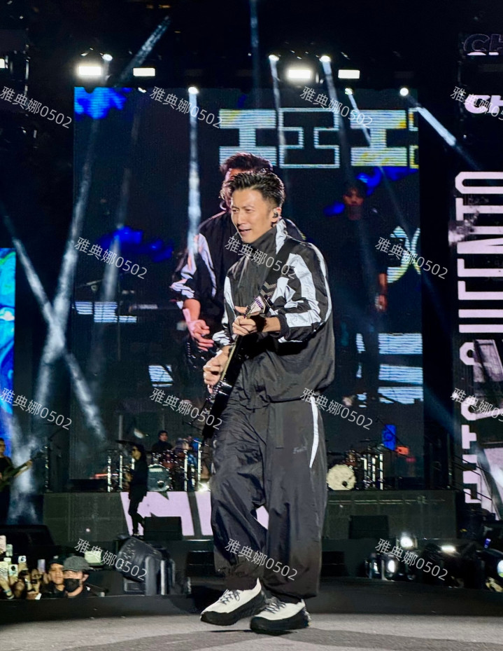 但今天的演出他穿了一套黑色的运动服亮相,这种造型更不适合他,肥大的收腿裤不仅显腿短,整个人身材比例也五五分,明明脸那么帅但拍出来照每张都不太好看。